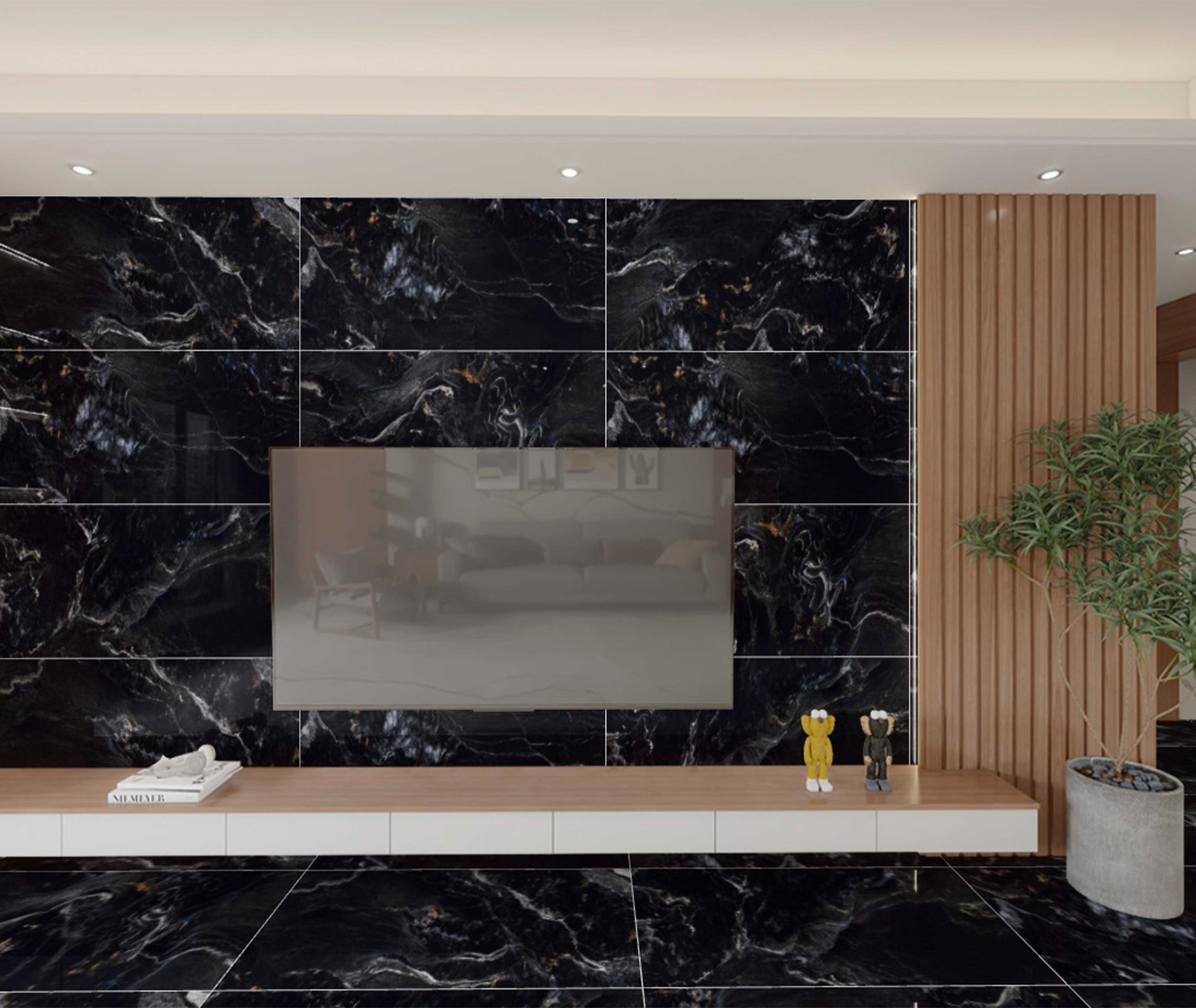 Плитка с полированной поверхностью смотрится особенно реалистично с природными текстурами (так, часто сложно отличить полированную плитку с текстурой камня от натурального материала).